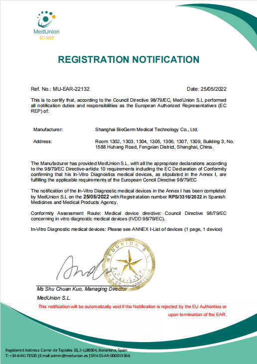 2022年5月23日,伯杰醫(yī)療猴痘病毒核酸檢測試劑盒(PCR-熒光探針法)產(chǎn)品獲歐盟CE準(zhǔn)入。
